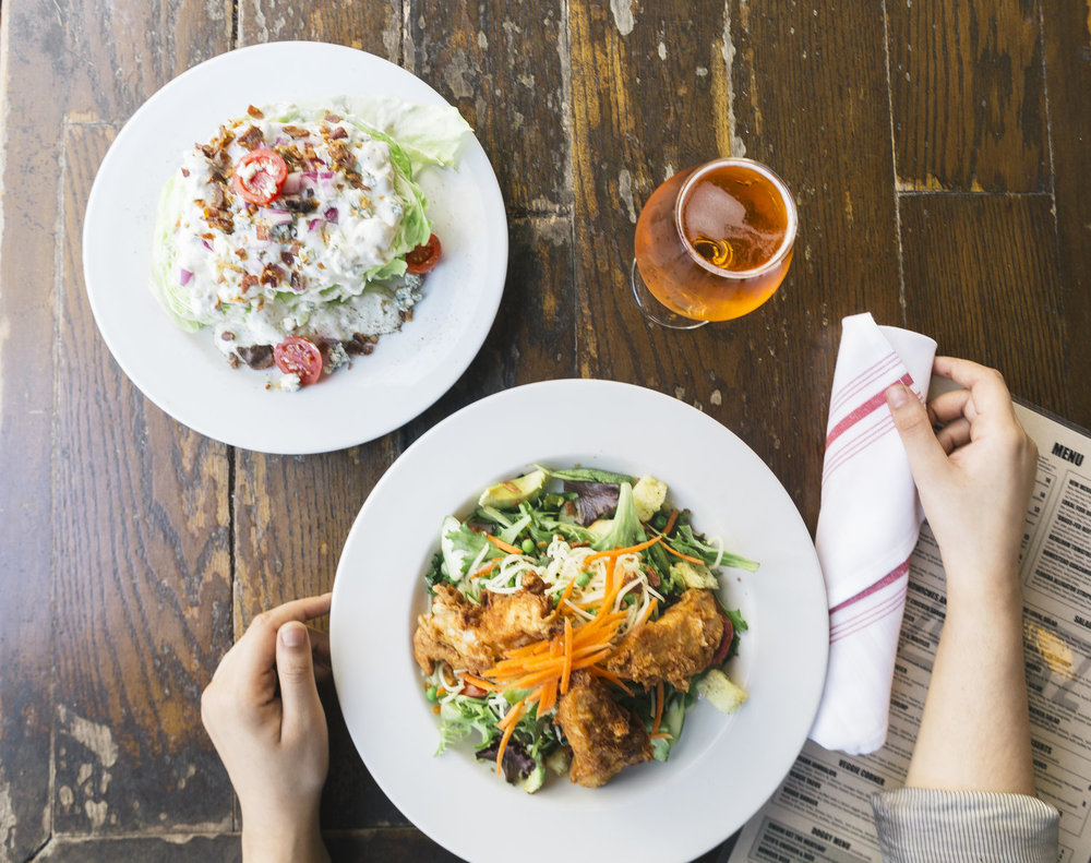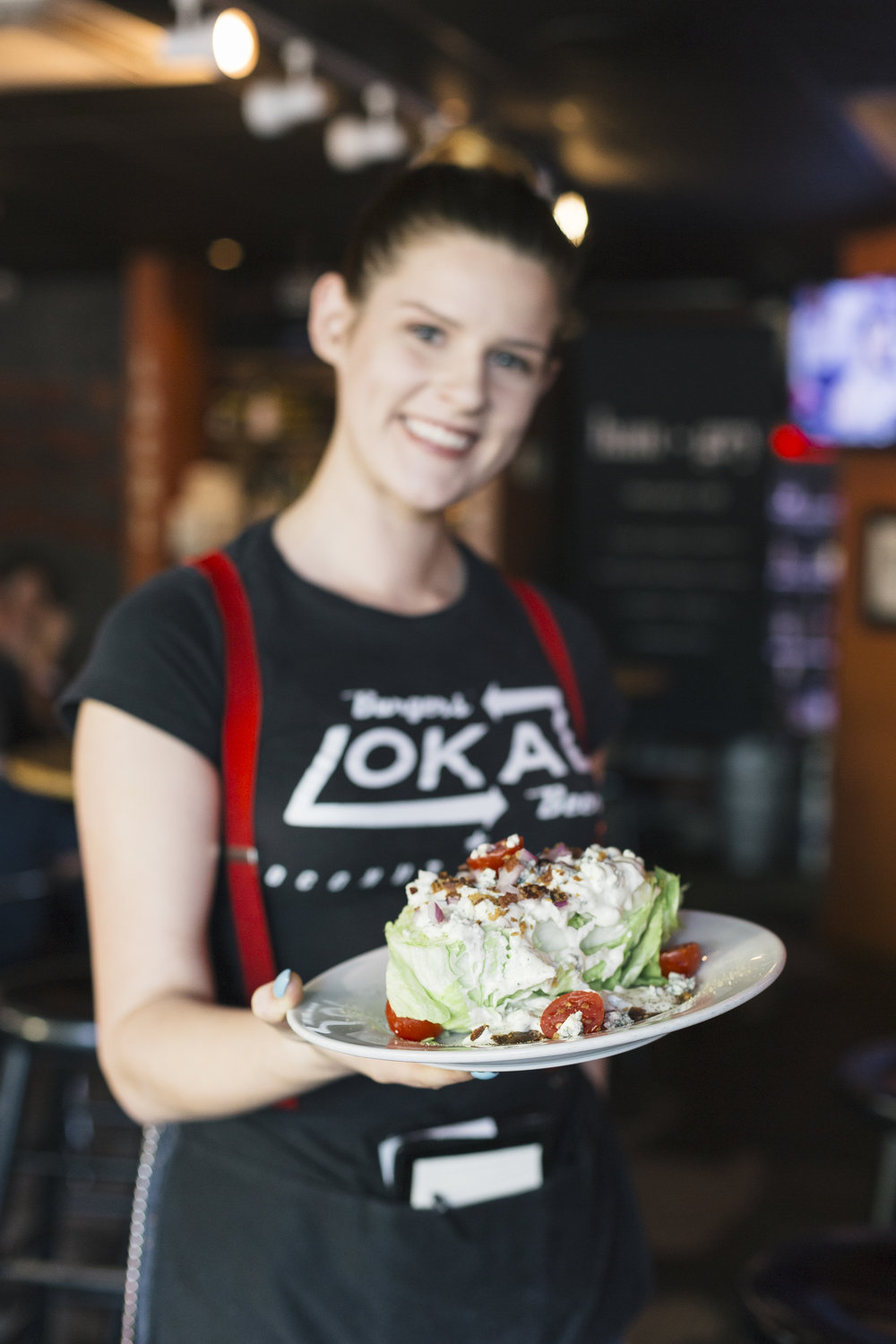 Mixed greens tossed with carrots, bacon, tomatoes, croutons, avocados, green peas, cucumbers, gruyere cheese. Choose from one of our homemade dressings: Blue cheese, creamy garlic, Lokal vinaigrette or honey mustard.