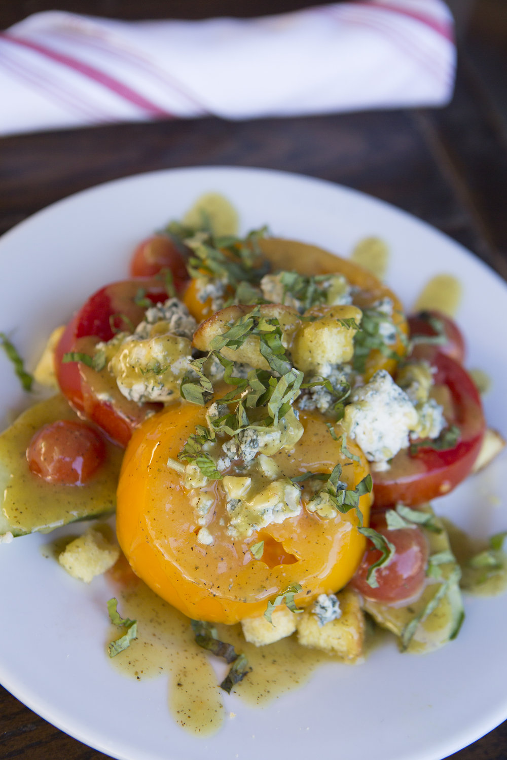 Local heirlooms topped with Danish blue cheese, cherry tomatoes, cucumbers, homemade croutons, and fresh basil, drizzled with LoKal vinaigrette.